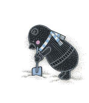 Sebastian läks ukse juurde ja vajutas lingile. Uks ei avanenud. Ta surus õlaga, lükkas taguotsaga ja sai suure vaevaga ukse praoki le. Nüüd oli kõik selge. Öösel oli nii palju lund sadanud, et karu maja mattus hangedesse. Sebastian sügas käpaga kukalt. Kuidas ta võis nii rumal olla, et jättis oma lumelabida puukuuri! Mismoodi ta nüüd välja saab?