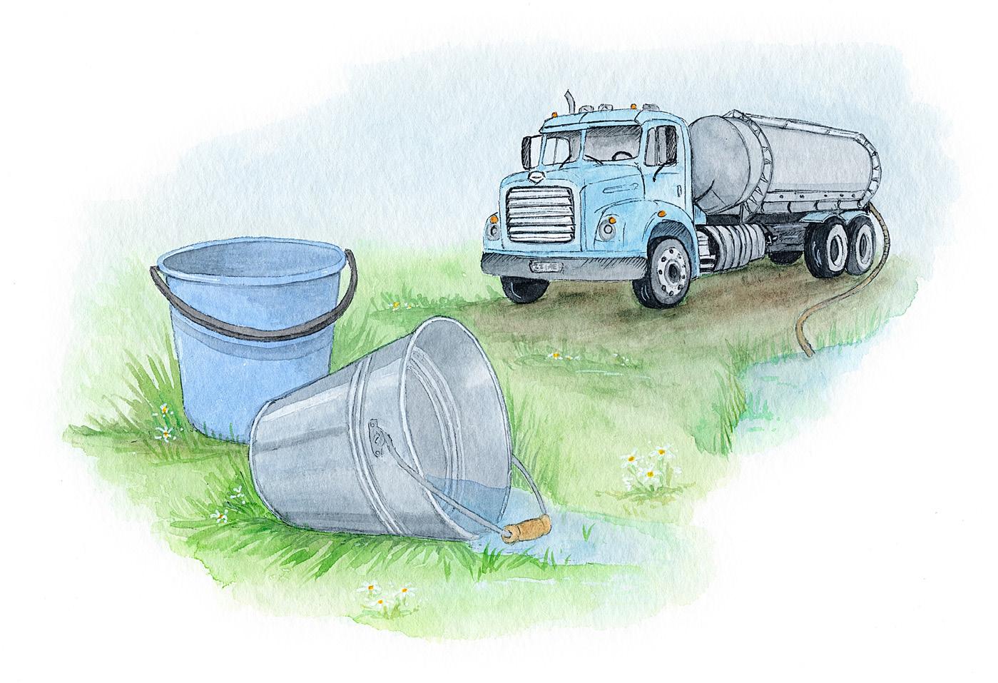 „Ma ei tea, kes! Kuid vanaisa ja vanaema arvavad, et peab tegema! Muidu läheb tiik hukka ja kogu elu seal sees samuti. Võib-olla suur paagiauto imeb tiigi tühjaks.”