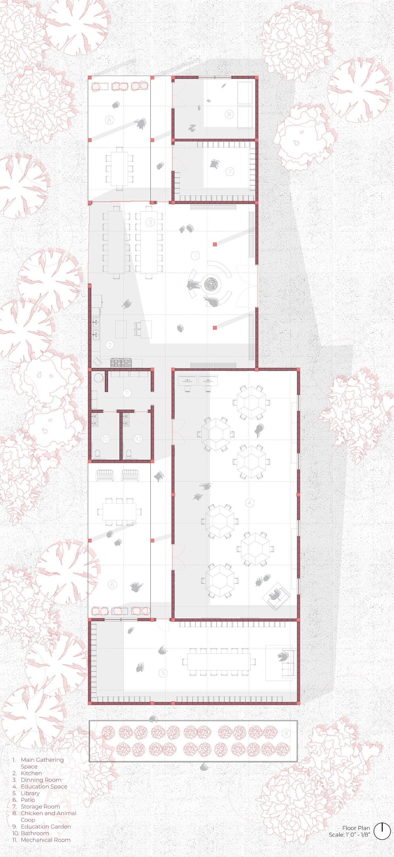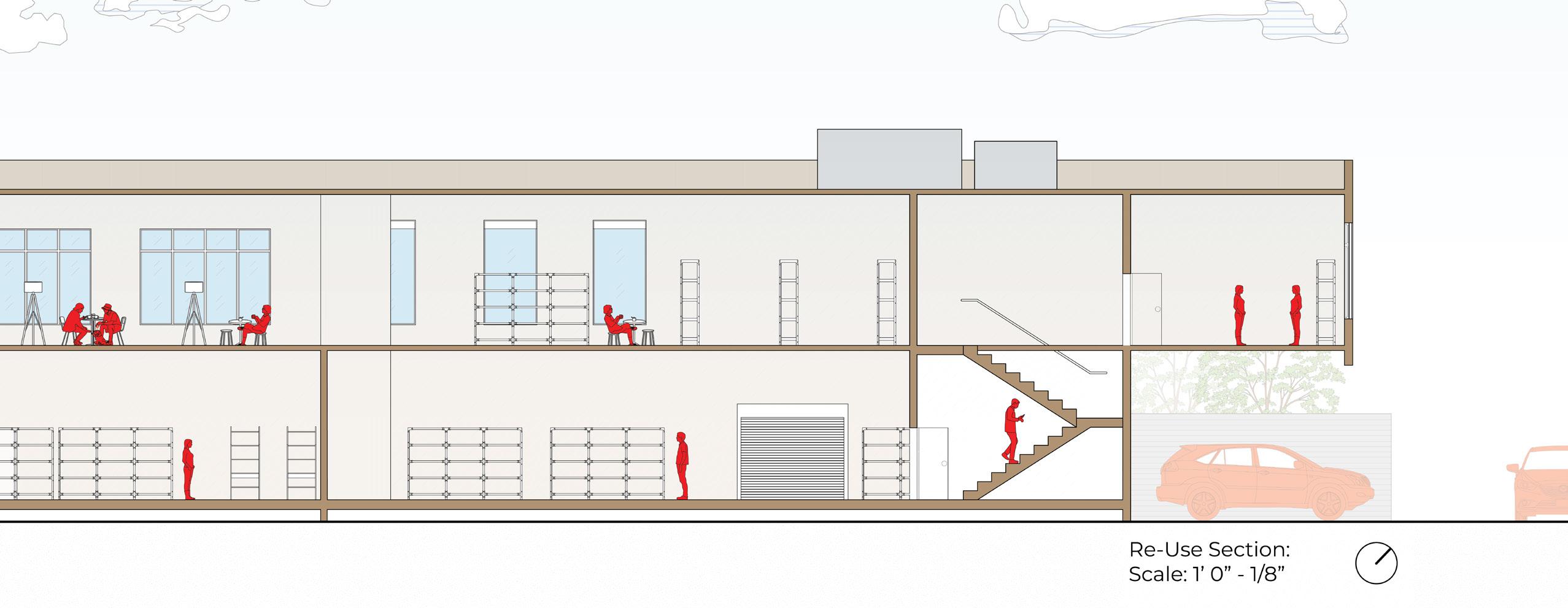 The new siting for the Re-Use Center offers outdoor experience that is both private and public for community members and residents. Outdoor education experiences such as a community farm allow for individuals to engage more in the land apart of their community.