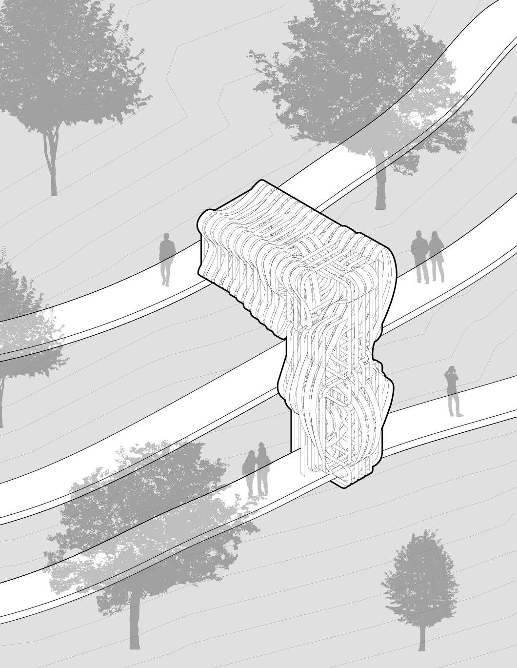 We selected locally sourced timber specifically from white pine trees to help with lumber and the transportation of materials. We took inspiration from the white pine in its anatomy to produce a structure that was sustainable and also helped blend nature and tradition into the design project.