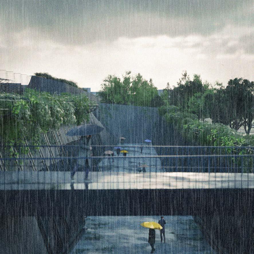 San Isidro Cemetery proposed view, over the pedestrian bridge conecting the public & garden areas.