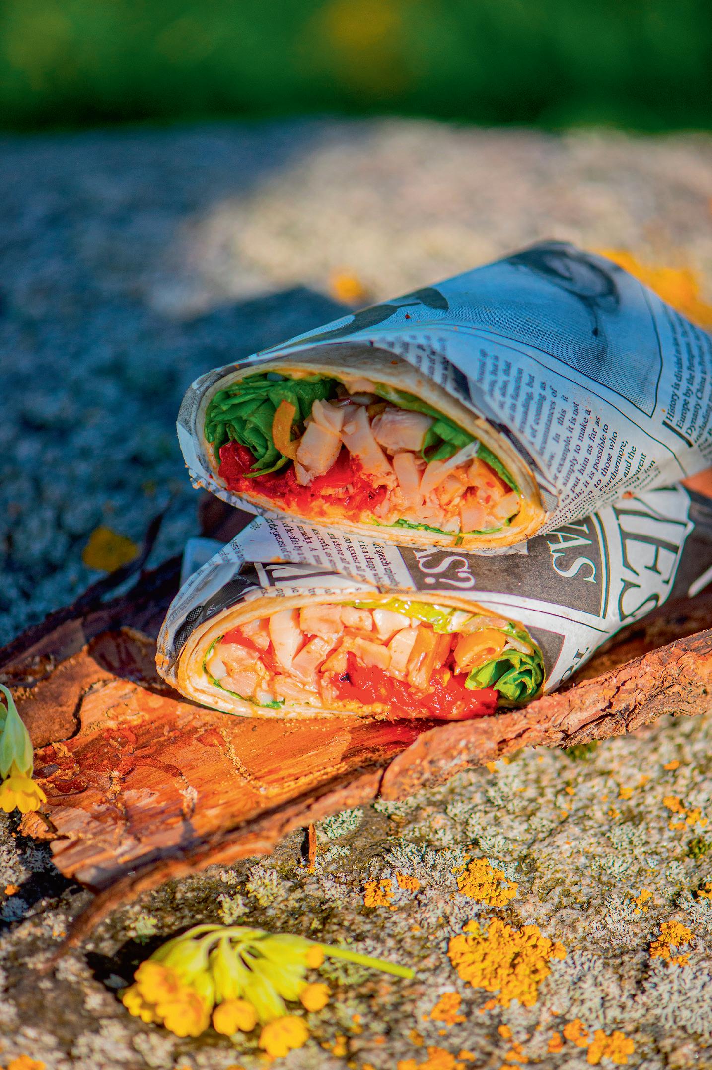 Suitsukanavrapi võib alati matkale minnes seljakotti pista. See on kerge ja maitsev vahepala, mida mõnus vahepeal jalga puhates haugata, kui kõht nurisema hakkab. Suitsukanale on siin vrapis seltsiks röstitud paprika. Seda võid valmistada lõkkel, grillil või siis kasutada juba valmistehtud röstitud marineeritud paprikaid, mida müüakse purgiga.