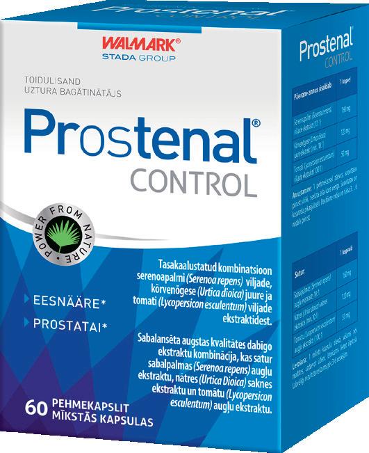 Prostenal Control tabletid (60 tk 21,34 €) tuleb mehele appi, kui urineerimine teeb muret. Preparaat toetab eesnäärme ja kuseteede normaalset talitlust ning normaalset uriinivoolu. Kõrvenõgese juure ekstrakt toetab eesnäärme tööd ja leevendab urineerimisprobleemide raskust, sh sagedust ja tungi. Tomativiljade ekstrakt toimib antioksüdandina.