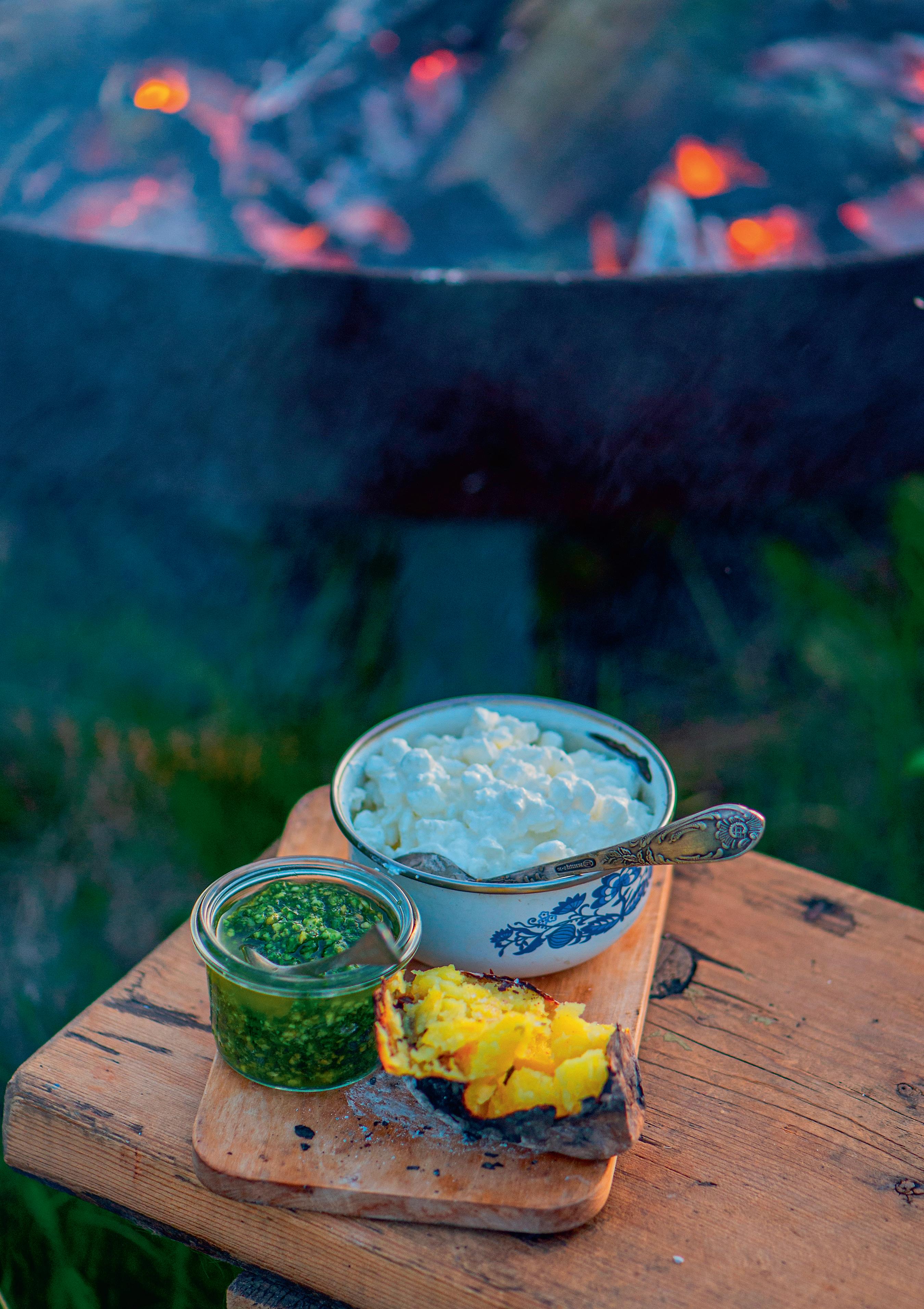 Lõkkekartulid on alati omal kohal, kui õhtul lõke üles teha. Need valmivad ju ilma igasuguse vaevata. Pealegi on suitsumaitselised kartulid väga mõnusad lapsepõlve meenutavad ampsud. Paku sinna juurde väekat karulaugupestot ja soovi korral ka kodujuustu. Midagi maitsvamat on keeruline välja mõelda!