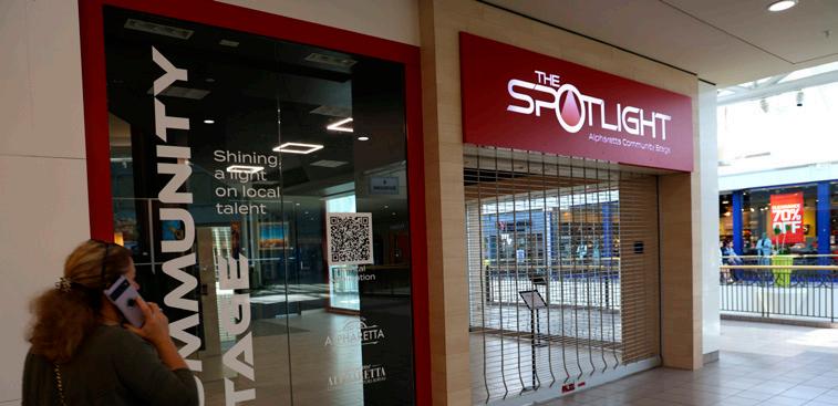 The City of Alpharetta has created a new community stage in an unlikely space — a former Foot Locker on the second level of the North Point Mall. Located next to the food court and iconic