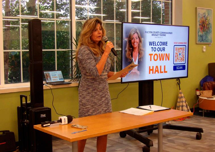 About 50 North Metro Atlanta residents attended the meeting at Ocee Library to visit with District 1 Commissioner Bridget Thorne, state Rep. Scott Hilton and other officials. The meeting covered a variety of topics from youth endeavors to the county’s downtown jail, but much of the discussion centered around public school taxes.