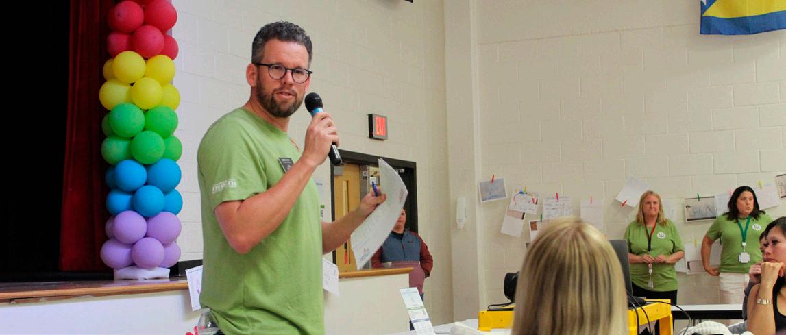 Alpharetta Recreation Commissioner Jeremy Scott speaks at the Wacky World design day at Alpharetta Elementary School March 28. Scott, a committee member on the project, asked guests to volunteer and donate to make the playground a reality.