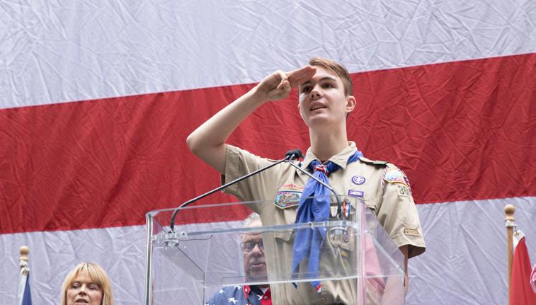The shady green space was transformed for the Memorial Day event with a massive American flag, 3,000 folding chairs, a stage and food trucks. The hour-long ceremony opened with a presentation of colors by See CEREMONY, Page 24