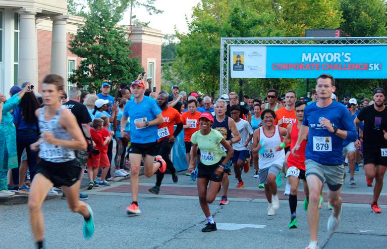Participants take off at the 2023 Mayor’s Corporate Challenge 5K Sept. 21 outside the Alpharetta Branch Library. City officials said 1,200 people registered for the race, hosted by the Rotary Club of Alpharetta to benefit local charities. See story page 7.