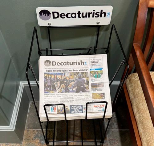 It launched March 20 and is delivered primarily to driveways in the Decatur area and in newspaper boxes, newspaper racks, and on counter tops at local businesses. When Hans told me about Decaturish Ink, I offered to help him figure out how to get Decaturish Ink distributed – the circulation piece of the puzzle.
