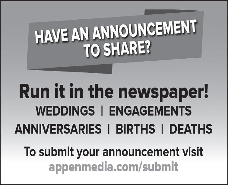 To place a classified ad, email classifieds@appenmedia.com. Deadline is Thursdays by 3pm