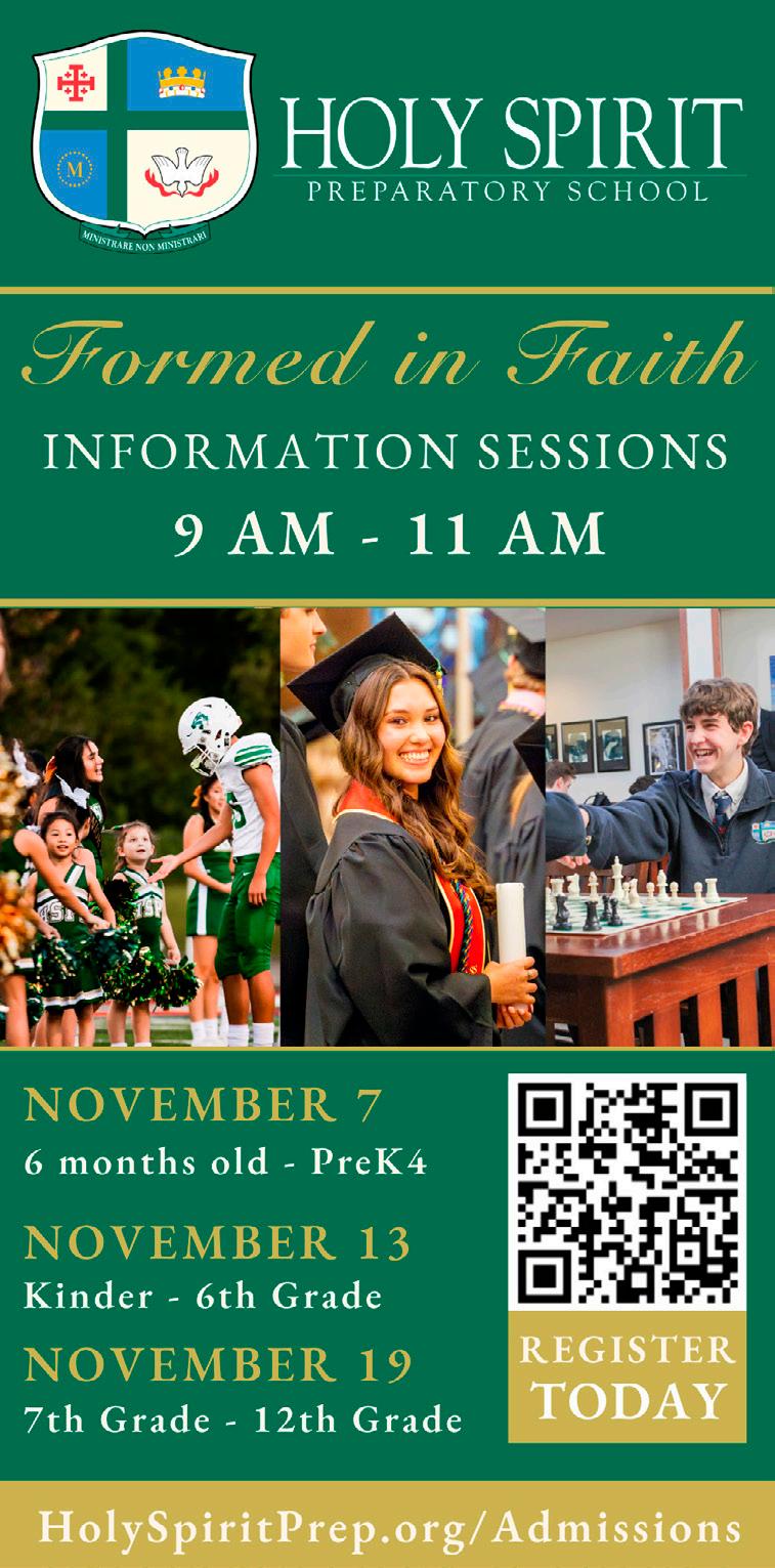 Tours will follow each session. Register today at holyspiritprep.org/ admissions.