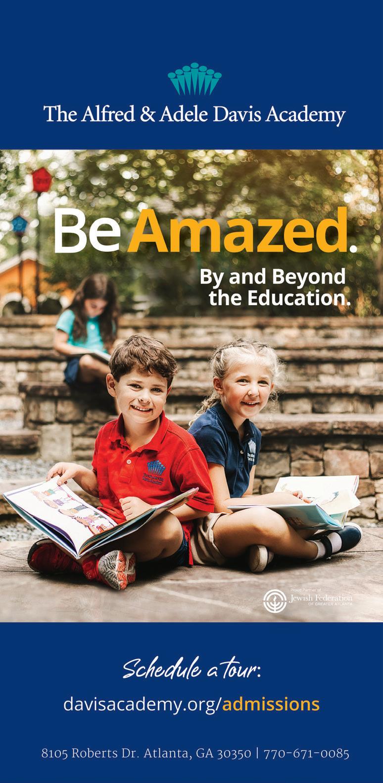 Students learn amongst a warm and supportive community that shares common values and visions. We teach life skills, instill Jewish values, and provide diverse experiences so that our students become well-rounded and selfconfident individuals. We celebrate both the ways our diversity makes our school vibrant and the individual differences that make our school community so unique. With a retention rate of 97%, The Davis Academy community is comprised of families from across the globe, nation, and 31 metro Atlanta zip codes.
