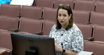 Associate Superintendent of Teaching and Learning Lee Anne Rice shares an update about how Forsyth County Schools supports its English learning students at a Board of Education work session April 9.