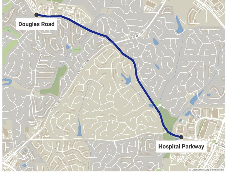 The county is now pursuing the project in two segments to manage costs: one from Douglas Road to Hospital Parkway in Johns Creek, and another from Douglas back to the Union Hill Road and Ronald Reagan Boulevard intersection in Forsyth County.
