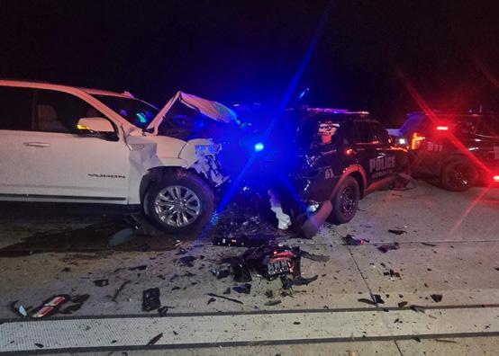 A 28-year-old witness said he saw the SUV drive straight into the back of the rear-most patrol vehicle. That patrol vehicle sustained severe damage and was disabled. The occupied patrol vehicle sustained damage to its rear bumper and lift gate.