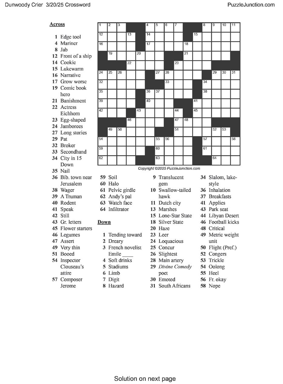 How to Solve: Each line in the puzzle above has three clues and three answers. The last letter in the first answer on each line is the first letter of the second answer, and so on. The connecting letter is outlined, giving you the correct number of letters for each answer (the answers in line 1 are 4, 5 and 5 letters). The clues are numbered 1 through 7, which each number containing 3 clues for the 3 answers on the line. But here’s the catch! The clues are not in order - so the first clue in Line 1 may (or may not) actually be for the second or third answer in that line. Got it? Good luck!