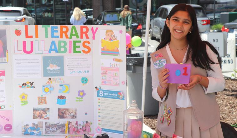 Stuti Mohan, a sophomore at Chattahoochee High School, showcases her Girl Scout Gold Award project at Halcyon’s Spring Market April 28. For the project, Mohan is working to address early childhood literacy in infants and toddlers by distributing around 400 books as well as literary guides to areas like South Fulton and impoverished villages in India.