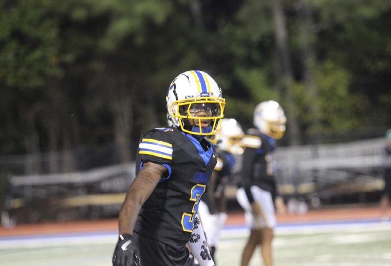 Chattahoochee senior wide receiver DJ Avery listens for the play call Oct. 11 during a home game against the Roswell Hornets. The Georgia State commit scored his team’s one and only touchdown.