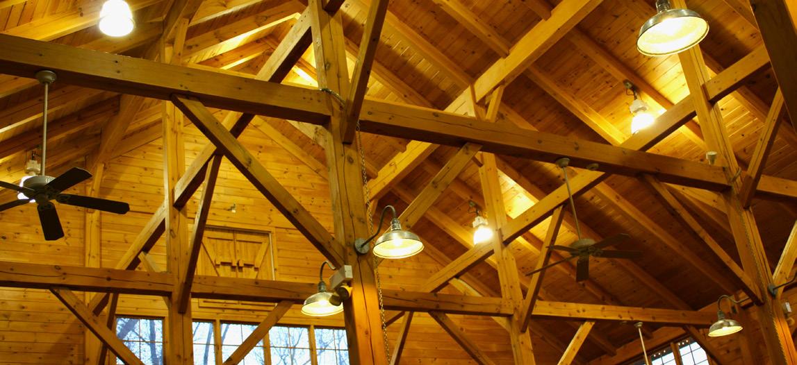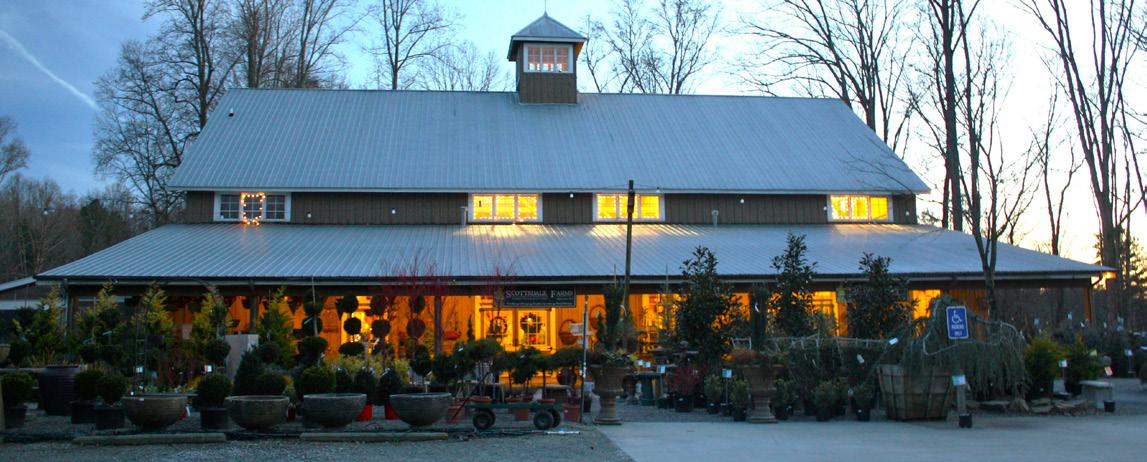 The landmark Scottsdale Farms garden center is a timber framed structure built of eastern white pine