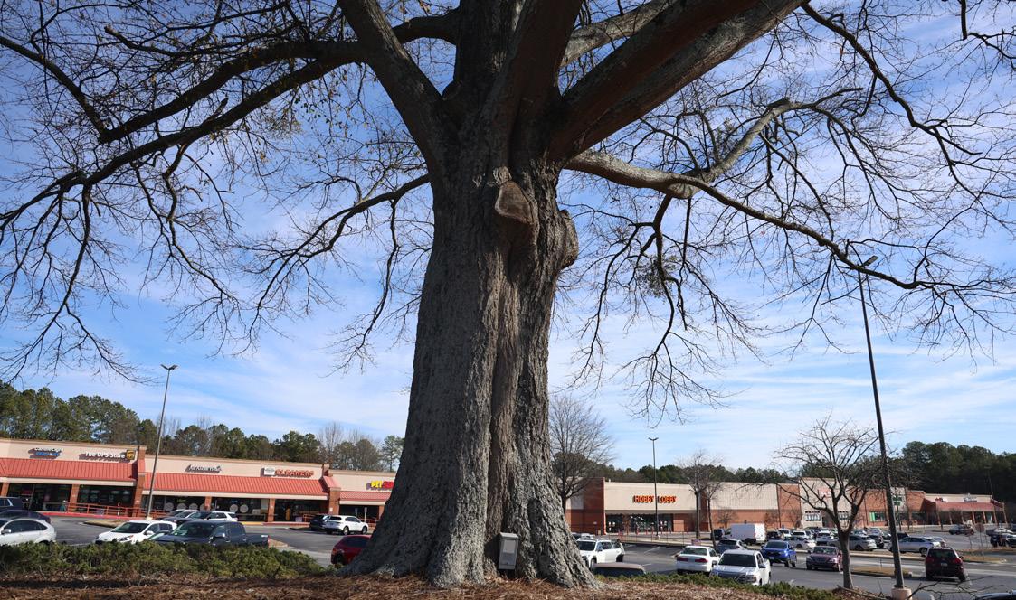 The 50-inch-diameter tree is located on a landscaping island in the parking lot at Medlock Corners, 5805 State Bridge Road. The shopping center is home to a Publix, Hobby Lobby, Dollar Tree and numerous other stores.