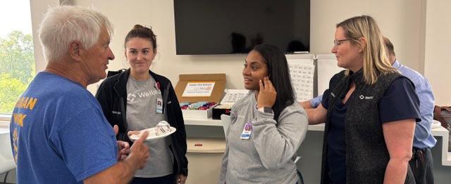 Rotary Club member Richard Matherly, left, speaks with local nurses after delivering lunches to Wellstar North Fulton Medical Center Aug. 19. Matherly was admitted to the hospital in 2024 after suffering a cardiac arrest.