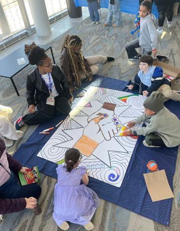 station, children completed a Dream Cloud craft to share their hopes for the future. The “Community” station included a large mural that attendees contributed to through drawings and color.