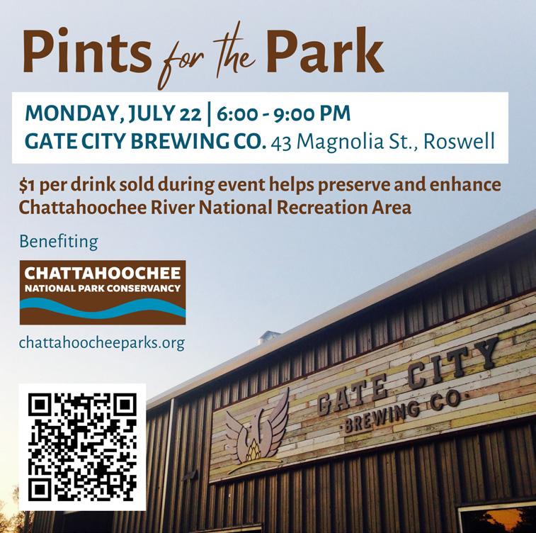 doing good deeds, mark your calendars for Pints for the Park on July 22nd! Held at Gate City Brewing Company in Roswell from 6:00 - 9:00 PM, join us for an evening of connection, community, and fantastic brews. For every drink purchased, $1 will be donated to the Chattahoochee National Park Conservancy (CNPC). This is a wonderful opportunity to relax, enjoy a good time with friends, and contribute to a worthy cause. We hope to see you there! Want to learn more about Chattahoochee National Park Conservancy and all we do to support our park? Visit chattahoocheeparks. org. See you in the park!
