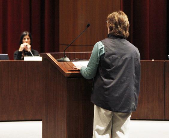 A Sandy Springs resident speaks to city councilmembers at a meeting Nov. 1, sharing how bow hunting of deer has affected certain areas of the community.