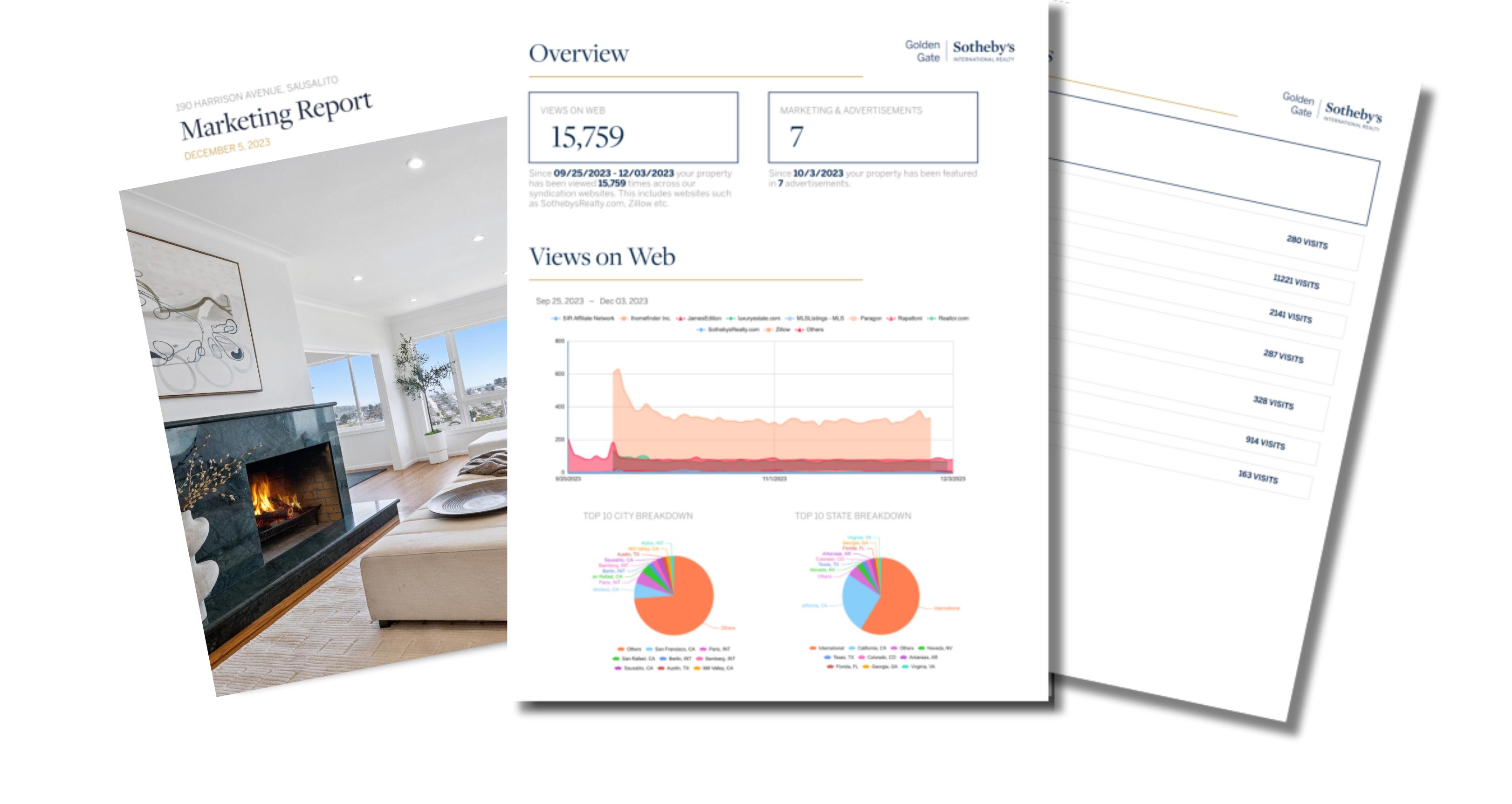 Your property will be showcased on our site, GoldenGateSIR.com, SothebysRealty com Through extensive advertising, content placement and media partnerships, traffic comes from sites like Mansion Global, Facebook, Architectural Digest and YouTube to our site where they can search and find your home.