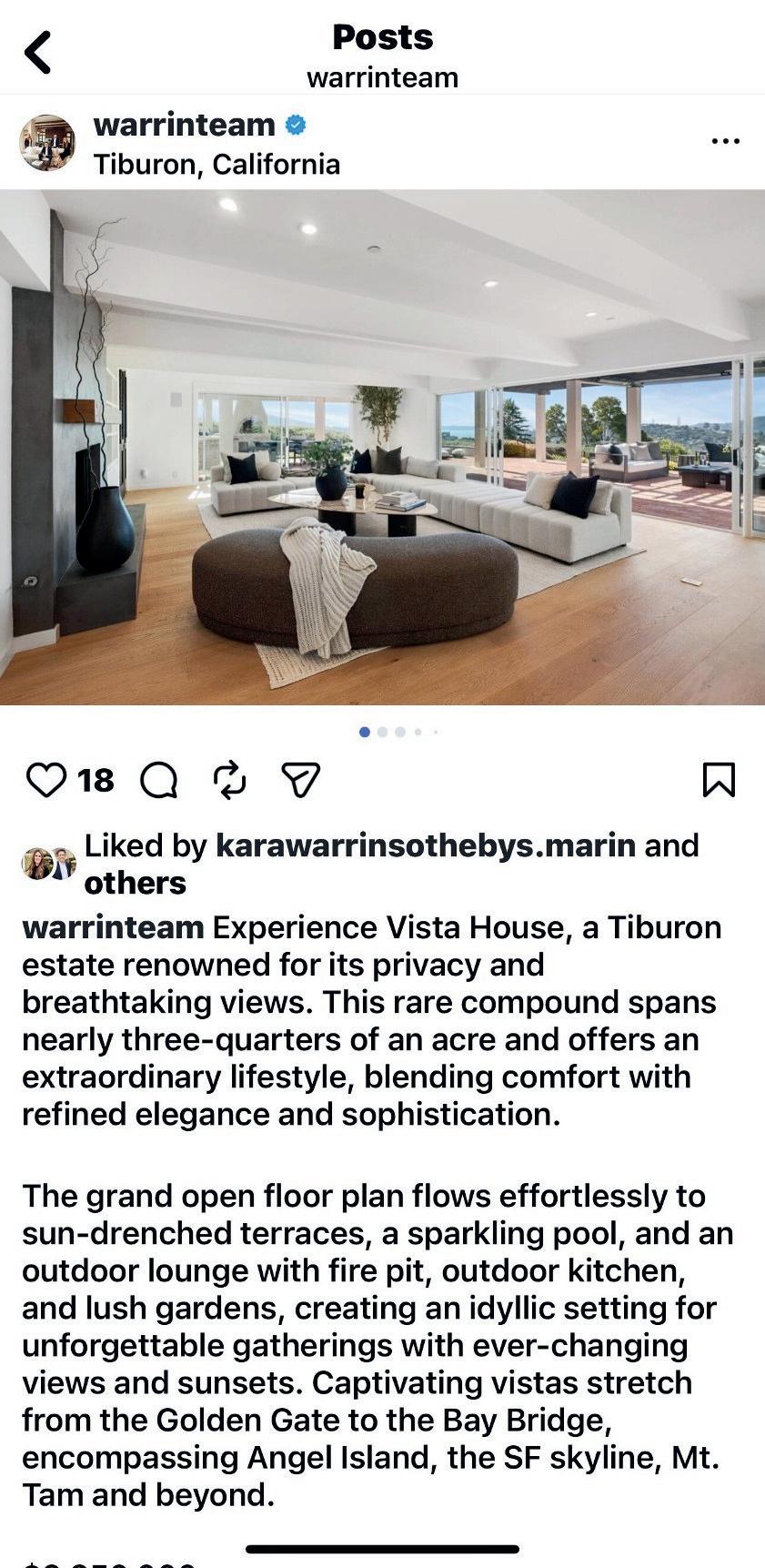 - The listing will be shared with top agents in Marin, San Francisco,and other key markets