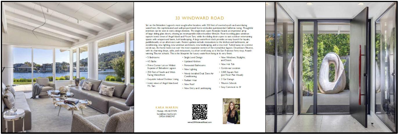 - The listing will be shared with top agents in Marin, San Francisco,and other key markets