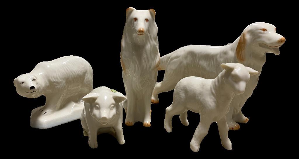 Figurines include Lladro, Royal Doulton, Hummel, Beatrix Potter, and Resin Beatrix Potter. Halcyon and Crummles enamel boxes, large collection of Belleek including black mark. Quilts, cologne bottles, clothing, furs, purses, Catholic liturgical garments, and other textiles.