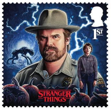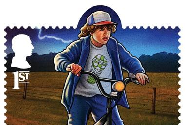 Royal Mail tends to be right up to date on the latest television phenomena as shown in a pair of se-tenant strips of five first class stamps depicting characters and monsters from the hit Netflix show, “Stranger Things.” The exclusive stamp designs were done by British artist and official “Stranger Things” illustrator Kyle Lambert and “contain hidden features revealed when the stamps are exposed to UV light.” One strip shows key “Rightside Up” world characters and backgrounds set against a red background while five more stamps with a blue background depict characters linked to the alternate dimension, known as the “Upside Down.” Royal Mail also issued a souvenir sheet of four stamps showing four of the main characters on bicycles, as seen in the show’s first season.