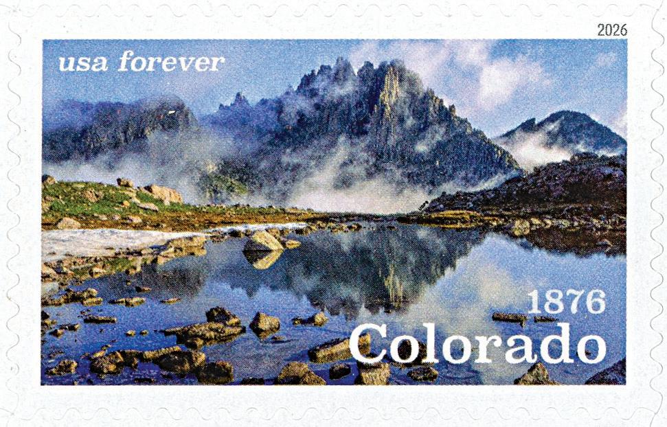 Colorado – known for its awe-inspiring views of the Rocky Mountains – is celebrated with a new commemorative stamp marking its 150th anniversary of statehood that indeed shows a majestic view.