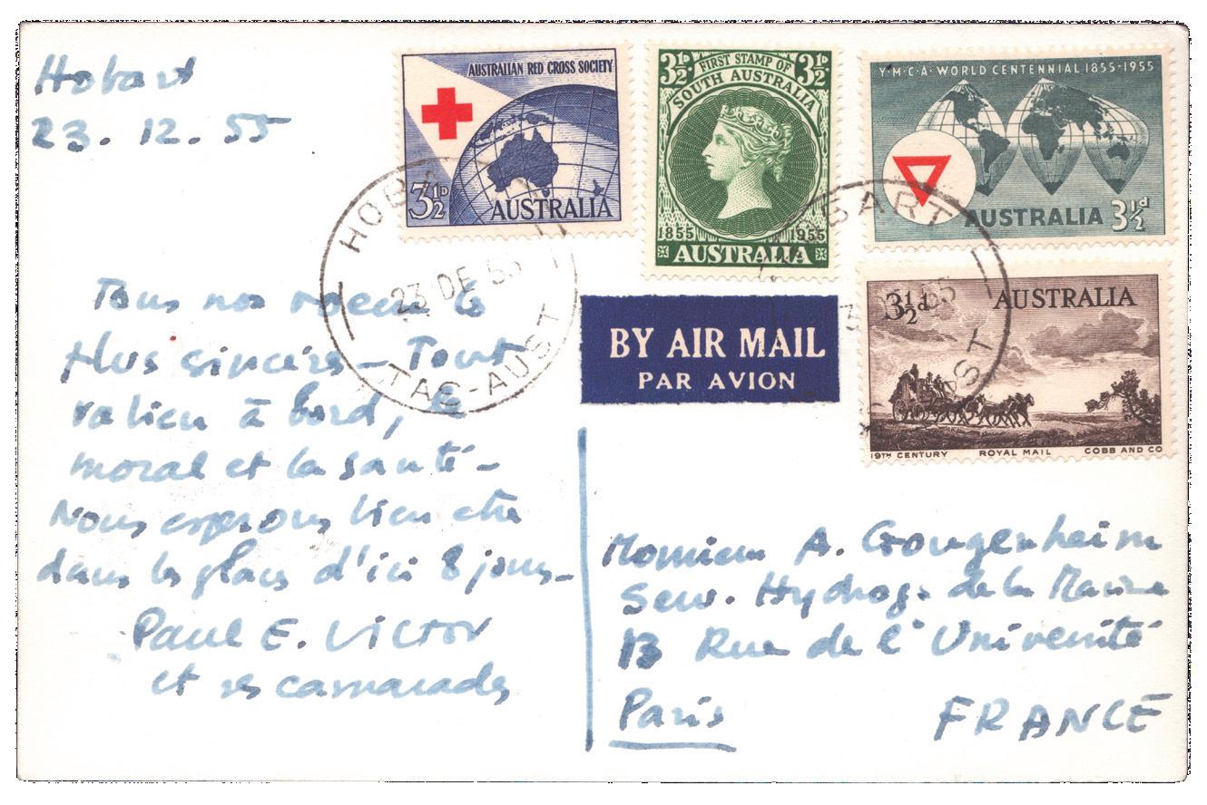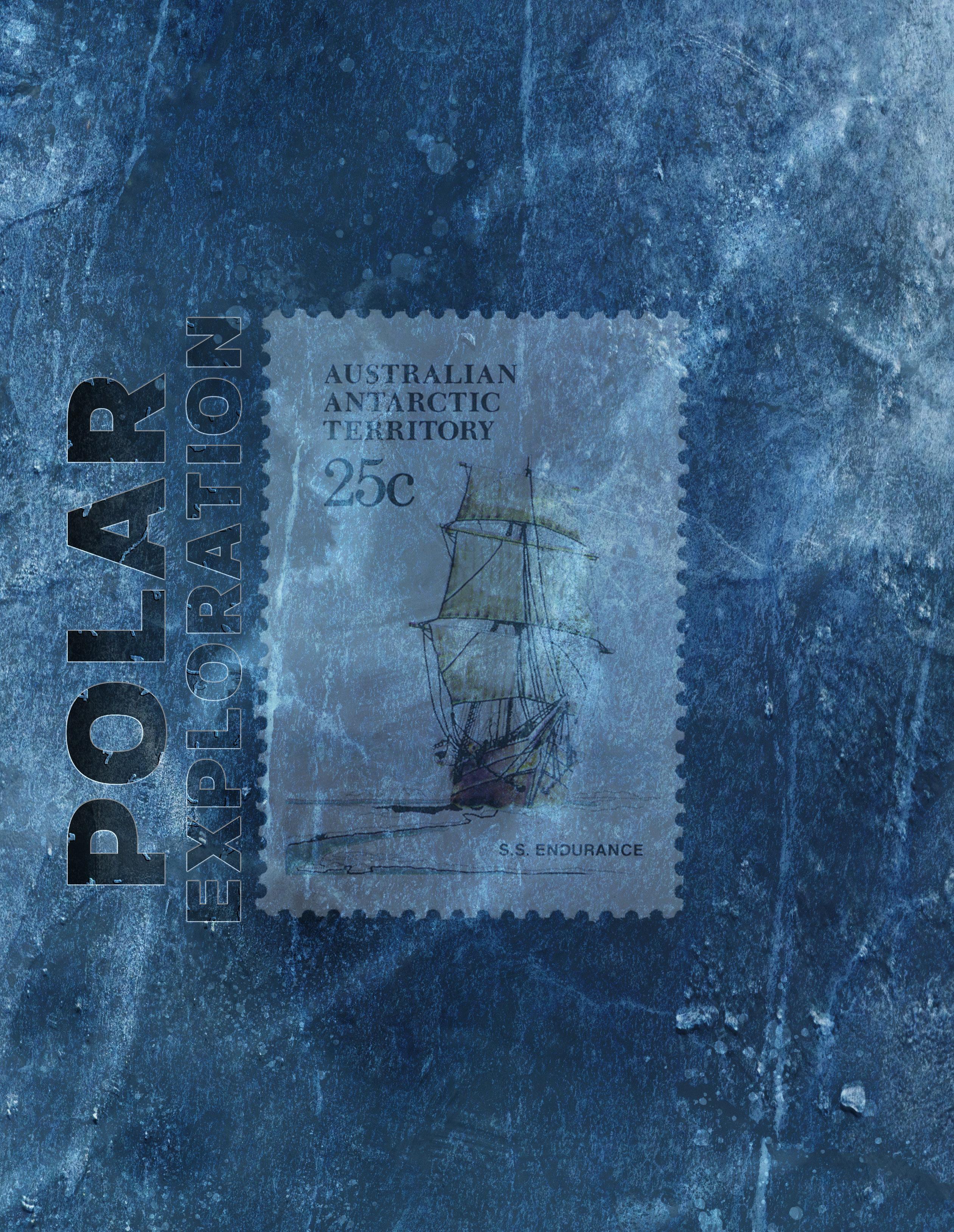 Designed by Chad Cowder, an Australian Antarctic Territory stamp celebrating the Heroic Age of Polar Exploration is buried under the thick icepack of the South Pole.