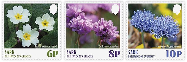 Among the Channel Islands off the coast of France lies the picturesque island of Sark. Though the sister islands of Guernsey, Jersey, and Alderney have produced stamps for many years, Sark began its philatelic journey this past summer. On September 3, Sark, under the administration of Guernsey, released its first definitives, a set of 15 Wildflowers stamps. They were designed by Bridget Yabsley and issued in sheets of 20. The flowers include including: 1p Rock Sea – Lavender, 2p, Violet, 3p Lesser Celandine, 4p Sand Crocus, 5p Red Campion, 6p Primrose, 7p Bluebell, 8p Thrift, 9p Sea Campion, 10p Sheep’s-bit, 20p Heath Spotted-orchid, 50p Oxeye Daisy, £1 Honeysuckle, £2 Bell Heather, and £4 Autumn Squill
