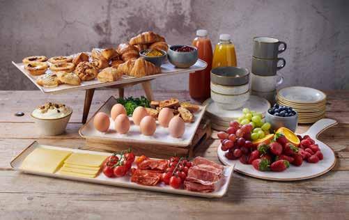 Innovative food display pieces create a visual feast, adding theatre and colour to enhance the breakfast experience. Products to suit all styles of food and interior settings, from rustic Buffetscape creating a market fresh look, to Granite melamine for a more contemporary and urban feel.