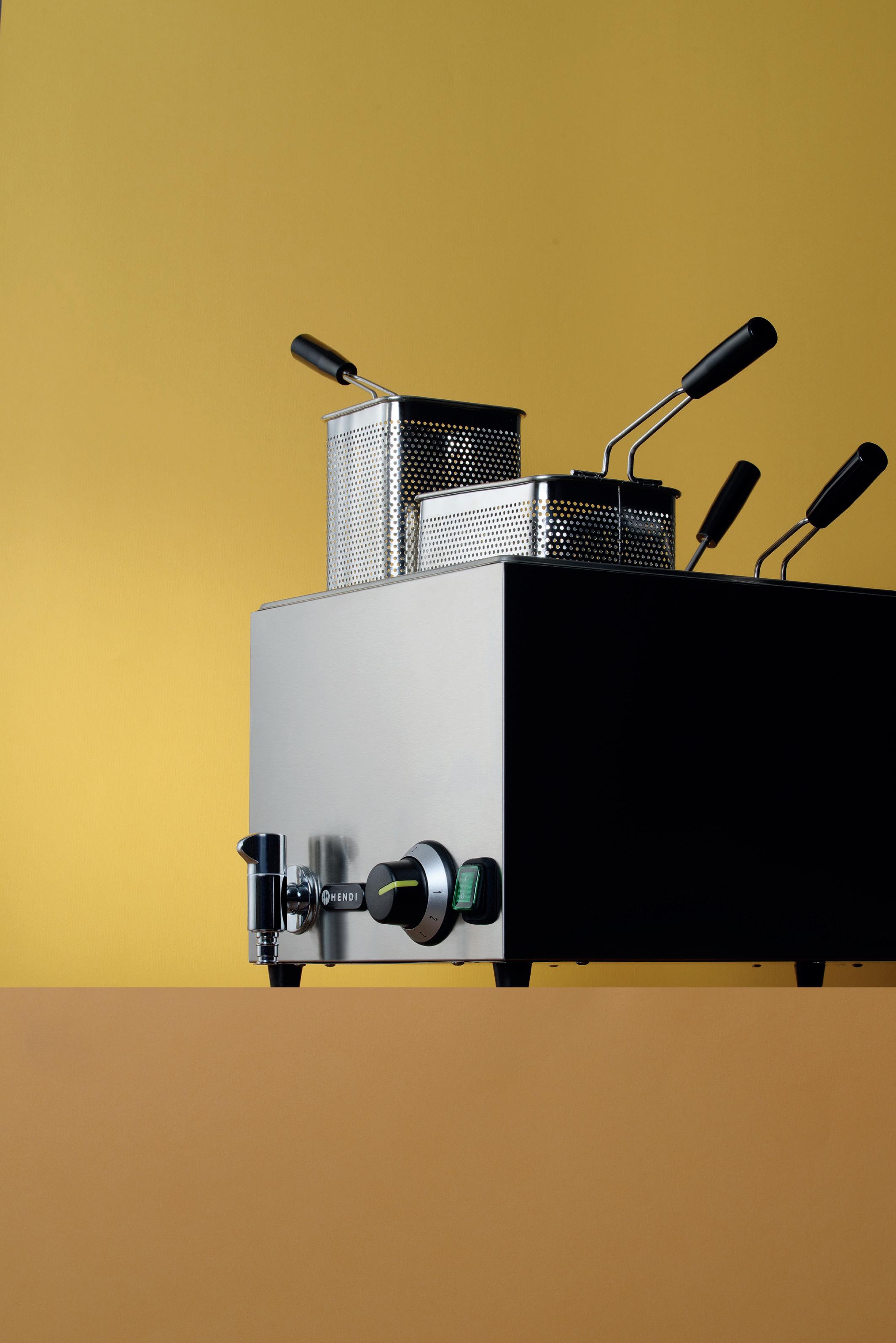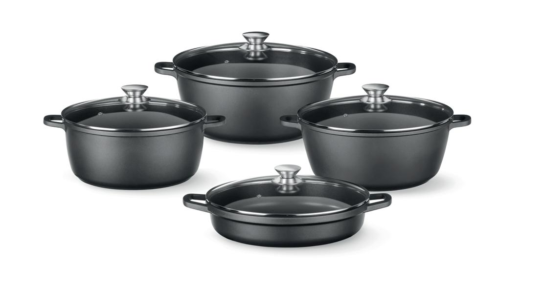 Made of die-cast aluminium with a heat-resistant coating. PTFE non-stick coating.