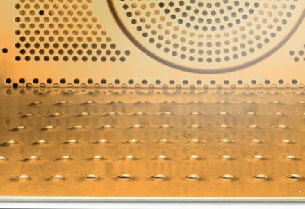 Lid with bumps on the inside that force water droplets (steam) to fall back, keeping the dish moist and aromatic.