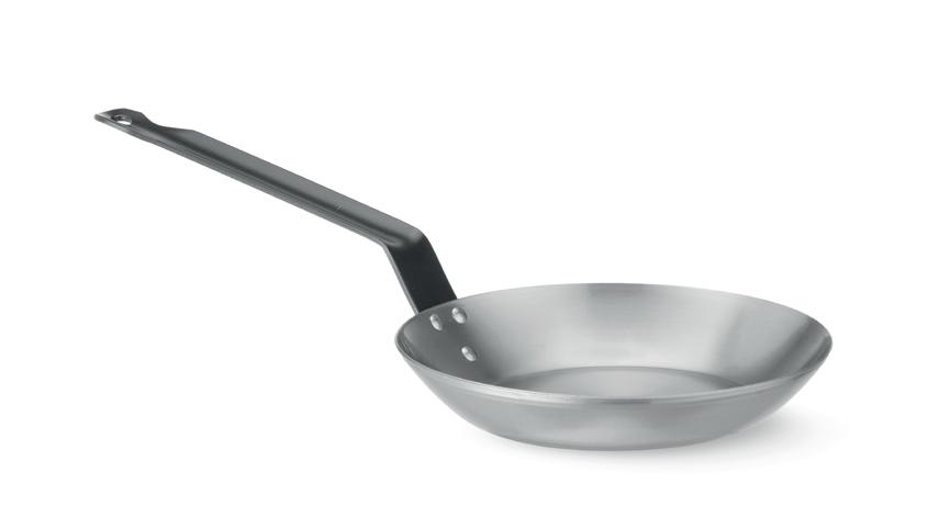 Classic round carbon steel frying pan with Lyonnaise shape. Perfect for a variety of cooking techniques, from browning and frying to searing and sautéing. Lightweight and easy to handle – perfect for daily cooking. Develops natural non-stick surface over time through seasoning. Heats quickly – excellent for searing and caramelising. French-style handle for comfortable grip. Equipped with a hanging hole for easy storage. It can be used in an oven for up to 10 minutes at a maximum temperature of 200°C. code mm