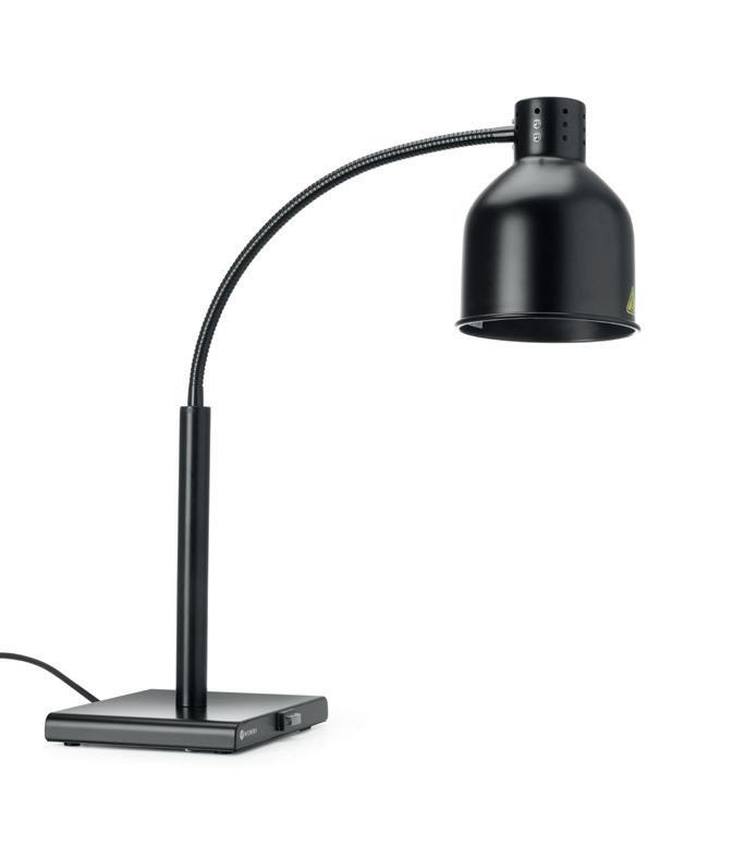 With anti-rust coating. Lampshade fitted on a flexible arm. Infrared shatterproof lightbulb included – suitable for keeping food warm. Fits E27 bulbs.