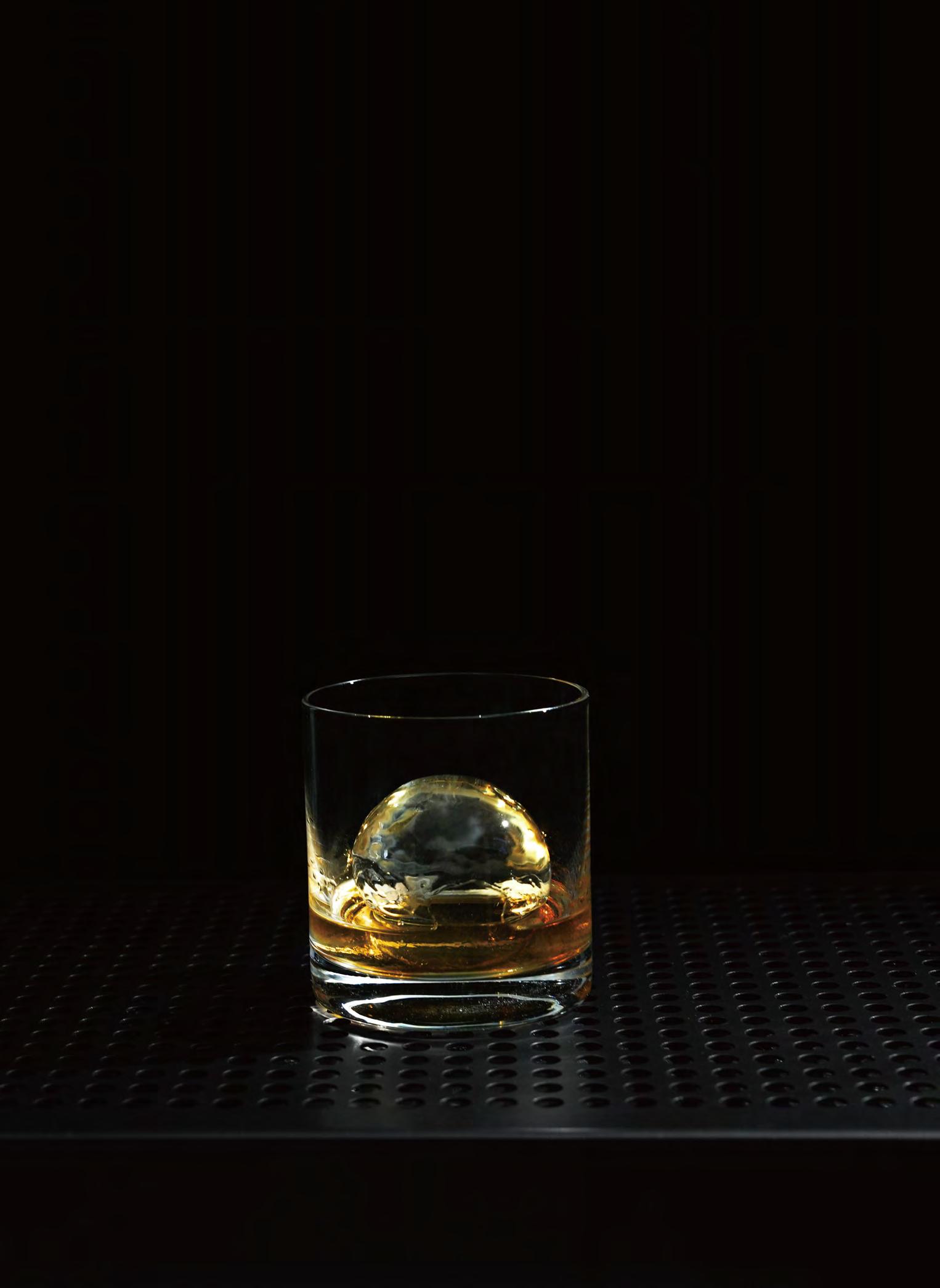 Ice spheres are commonly used in single malt whiskey, bourbon, and cognac as they have a smaller surface area and melt more slowly, keeping drinks cold and preserving the rich flavors.