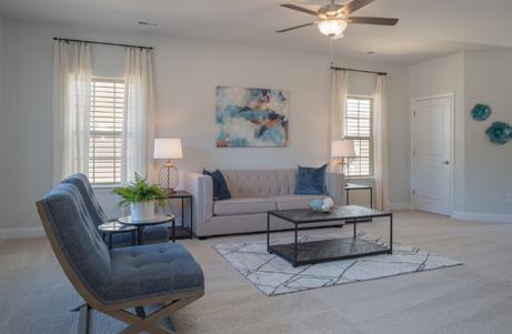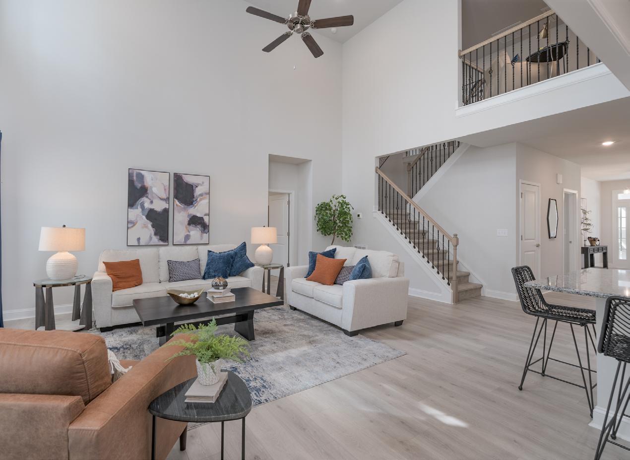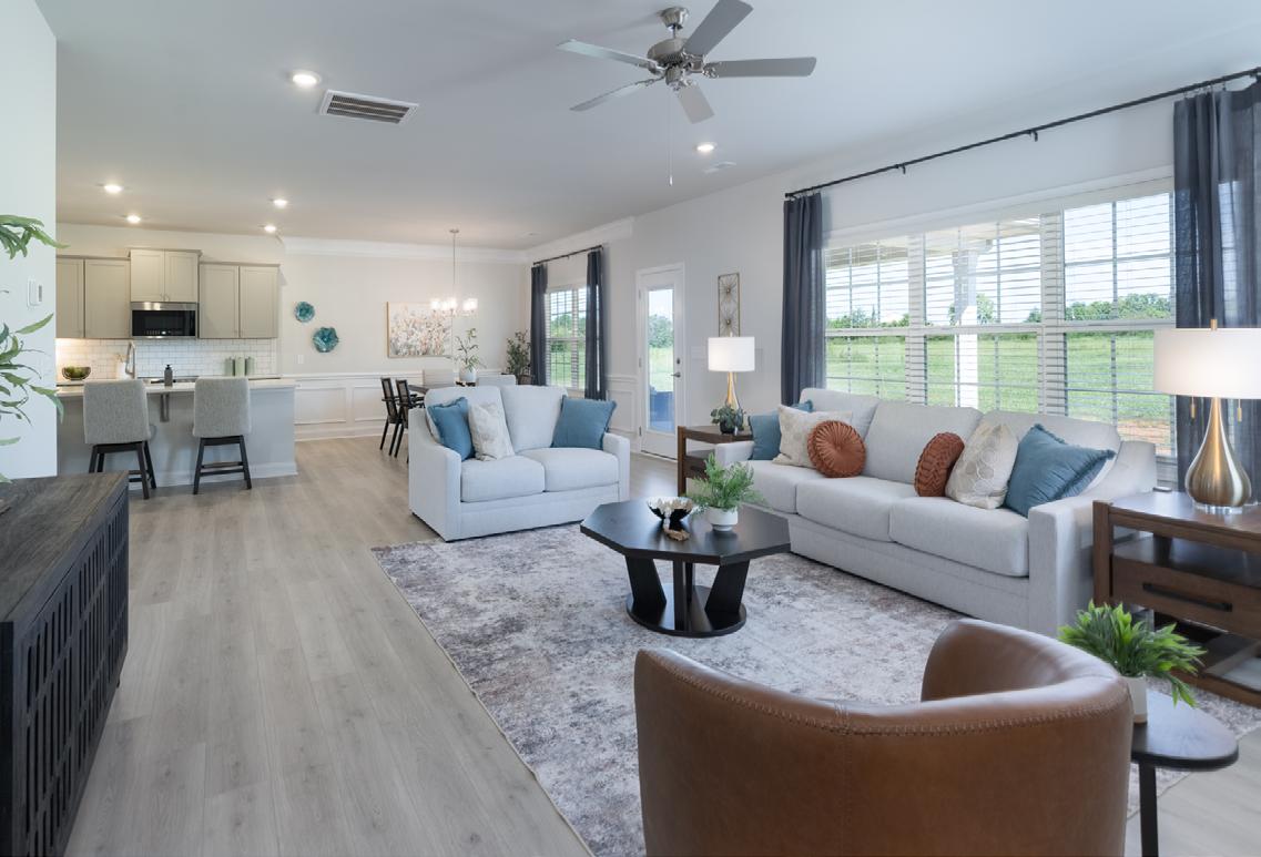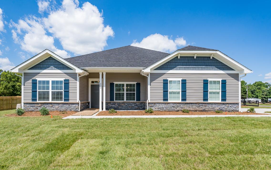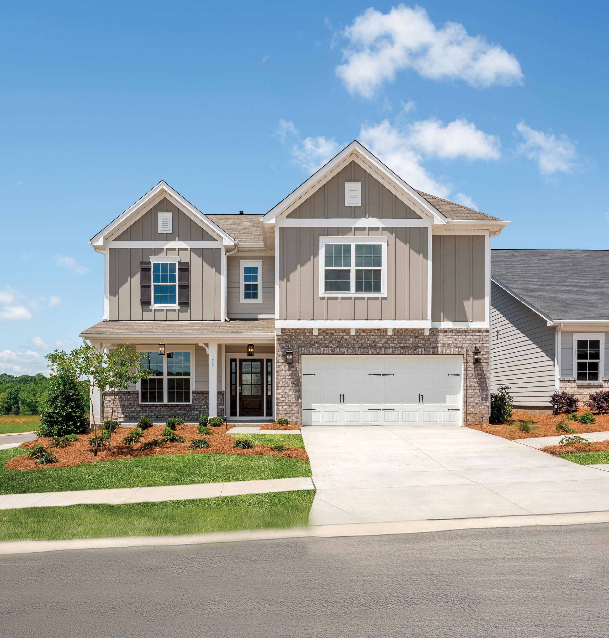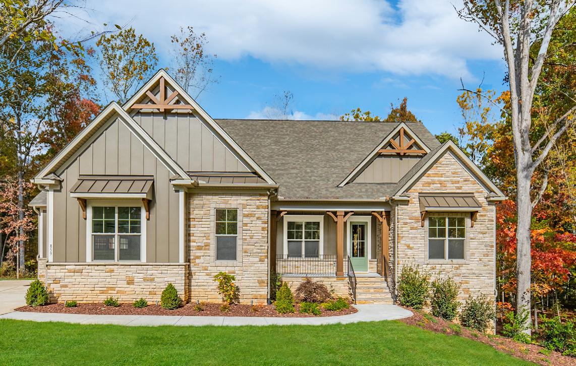 Calico Ridge offers 1.5 and 2-story homes with distinctive Craftsmanstyle exteriors featuring welcoming front porches and stone and brick accents, with a tranquil coastal vibe. Enjoy the natural walking trail, plus our pool and tot lot will open later this year, while being located minutes from Matthews and Monroe. Our model home is open daily.