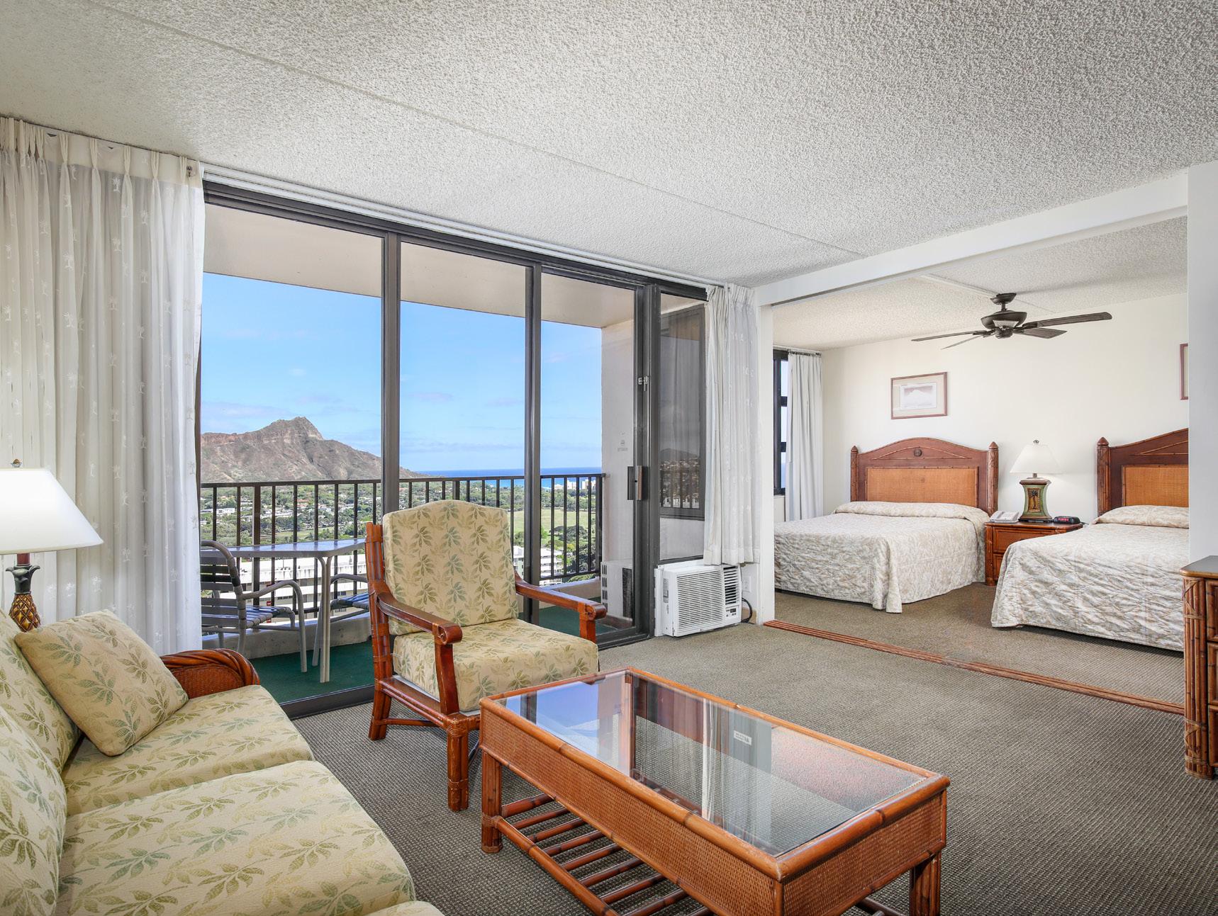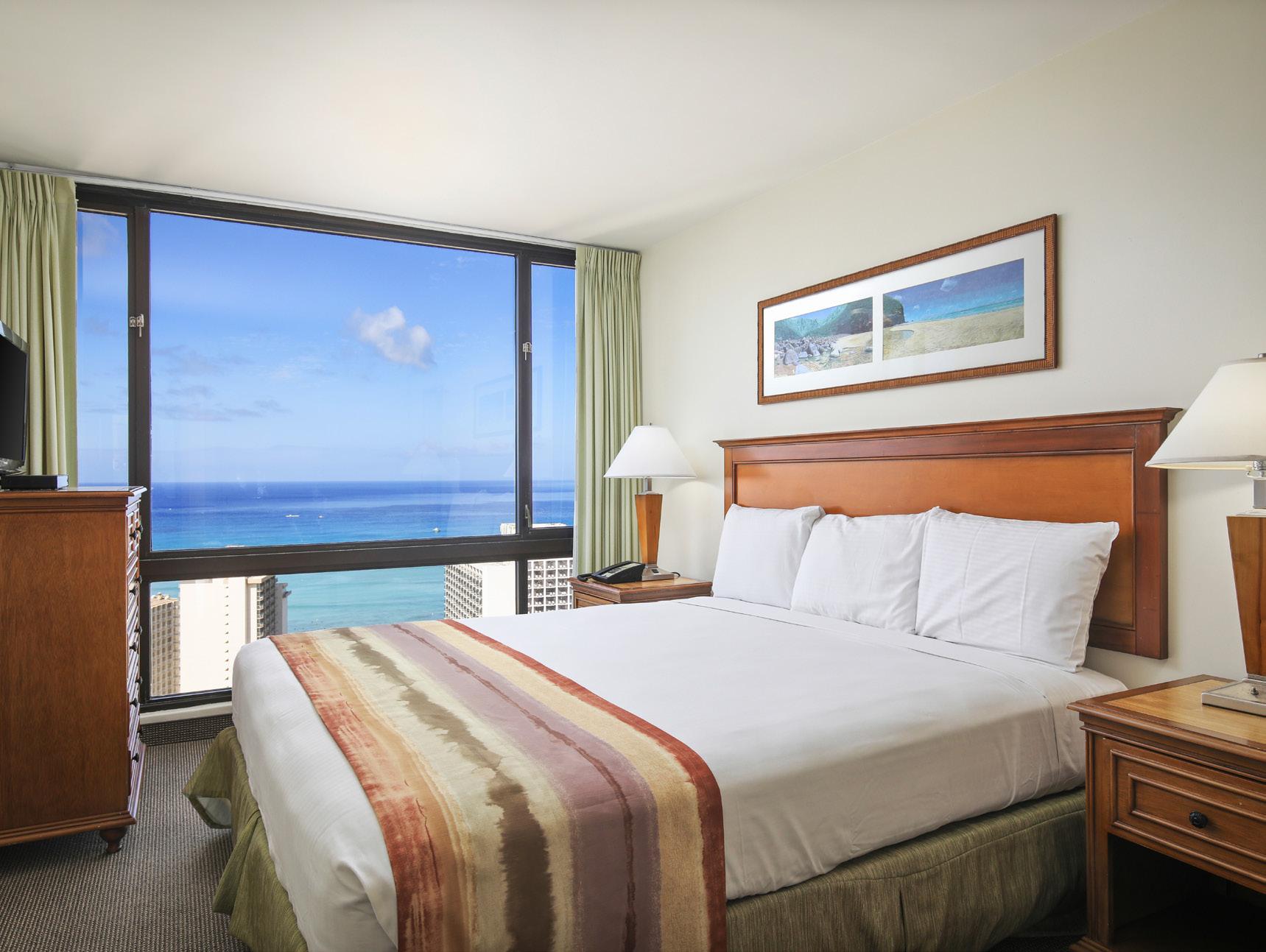 Condominium-style Aston at the Waikiki Banyan enjoys a long history as a favorite among locals and return visitors alike. With employees who have been at the property since its opening, Aston at the Waikiki Banyan’s ideal location near the excitement of Kalakaua Avenue makes it a destination for guests who like being in the midst of it all while still enjoying the peaceful side of Waikiki. Offering accommodations for up to five people at no additional charge, each 1-bedroom condominium suite has a separate lounge, a fully equipped kitchen, and a large private balcony overlooking the ocean, lush green mountains, or the Honolulu cityscape.