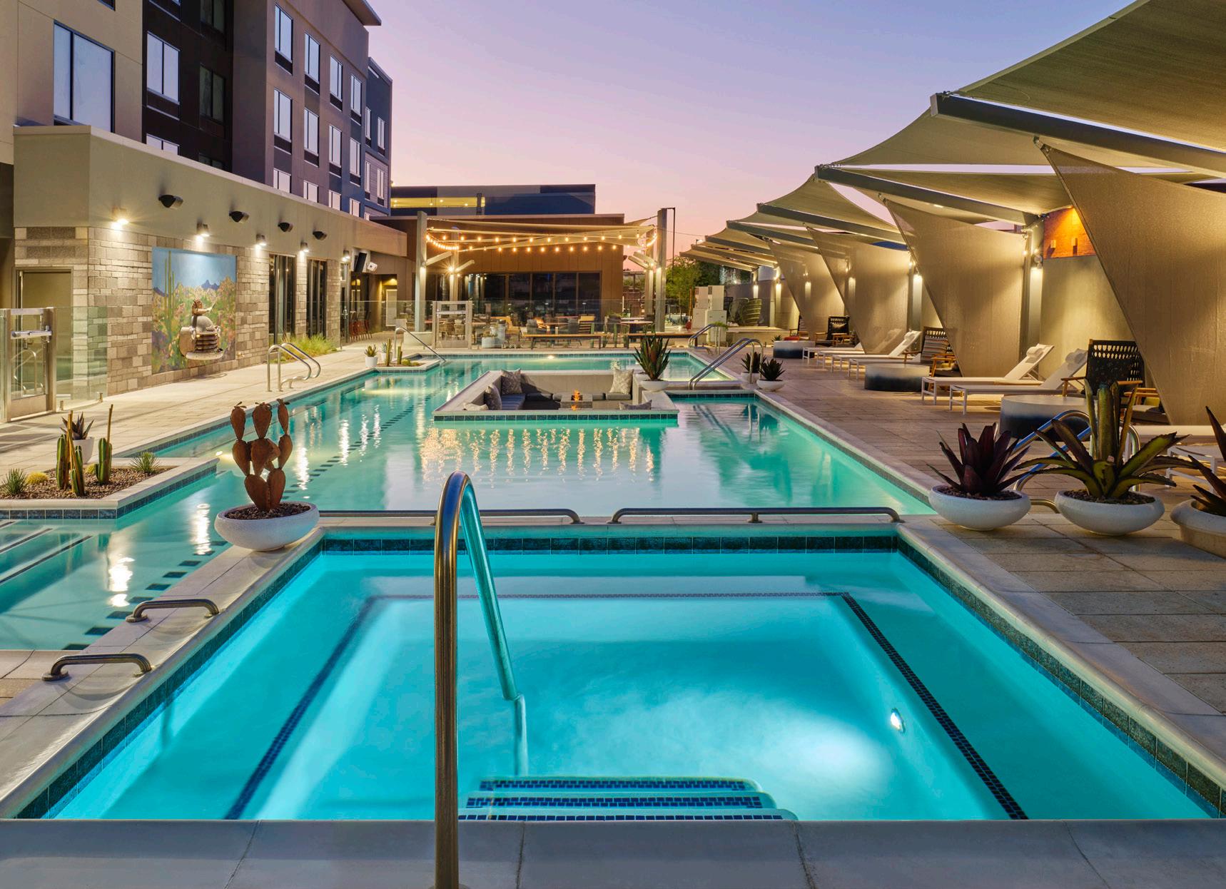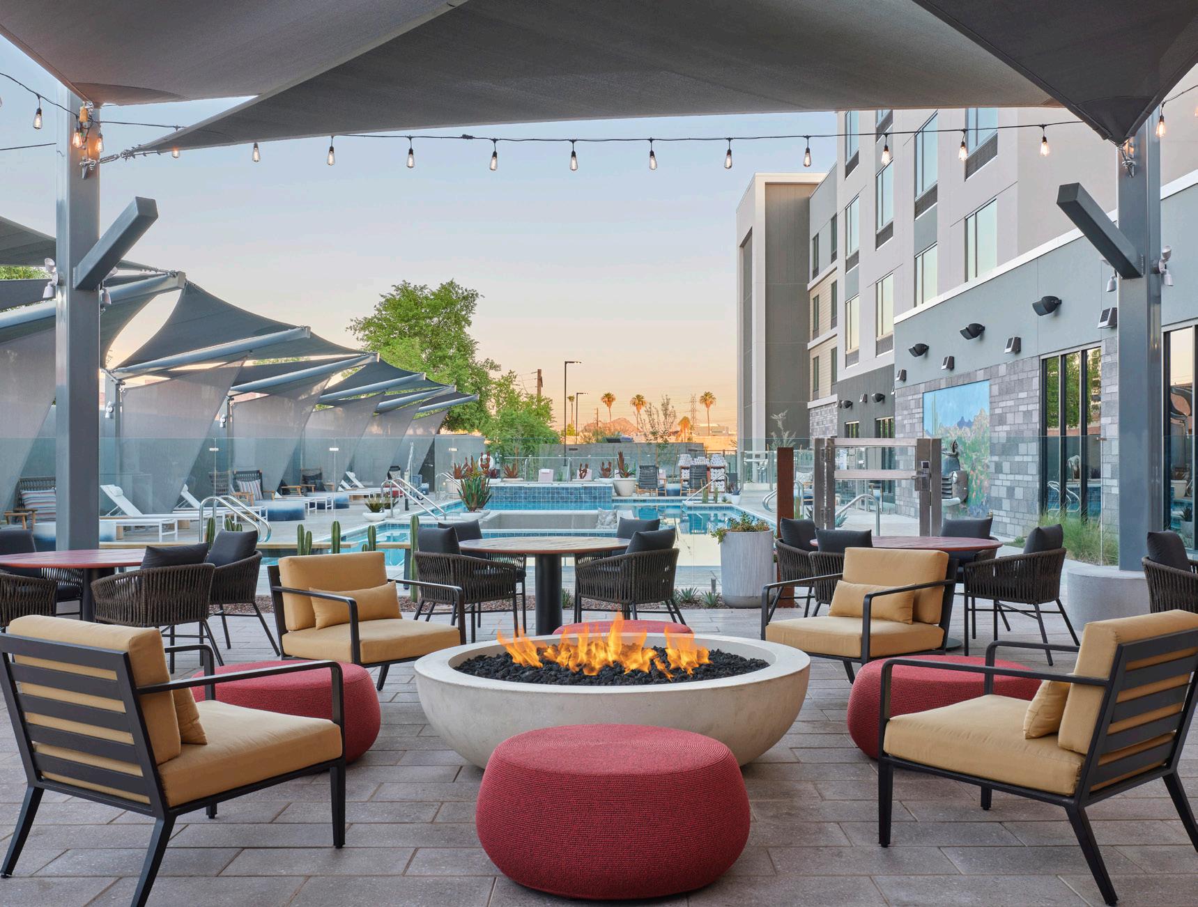Located across Tempe Marketplace and just minutes away from Arizona State University, TownePlace Suites by Marriott Tempe, one of the newest hotels near Phoenix Sky Harbor International Airport, shares common spaces with sister hotel Fairfield by Marriott Inn & Suites Tempe. Enjoy extendedstays with spacious accommodations and full kitchens, an on-site laundry facility, complimentary breakfast, and The Way Station restaurant’s Old West charm with live music and DJ performances. Relax by the outdoor pool, gather around the fire pit, or use the 24/7 fitness center. Ideal for business or group events, flexible meeting space makes the hotel a convenient choice near Major League Baseball spring training site Sloan Park, Mayo Clinic’s Sports Medicine Center, and Mountain American Stadium.