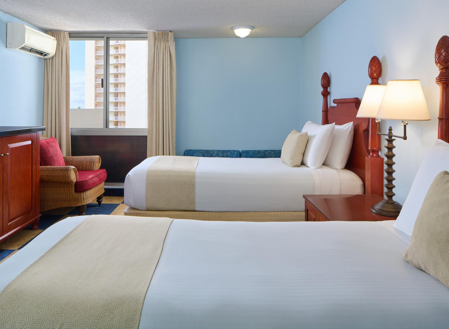 Guests seeking comfortable and charming island getaways at an affordable price need look no further than Ewa Hotel Waikiki. Pet-friendly accommodations with a tropical flair range from studios, 1-, 2- and 3-bedroom units with kitchenettes and private balconies. Guests can soak up the Hawaiian sunshine; take in a spectacular Waikiki sunset from the expansive rooftop sundeck; or head out to nearby activities and entertainment like world-famous Waikiki Beach, Diamond Head State Monument, Kapi‘olani Park, or Honolulu Zoo.