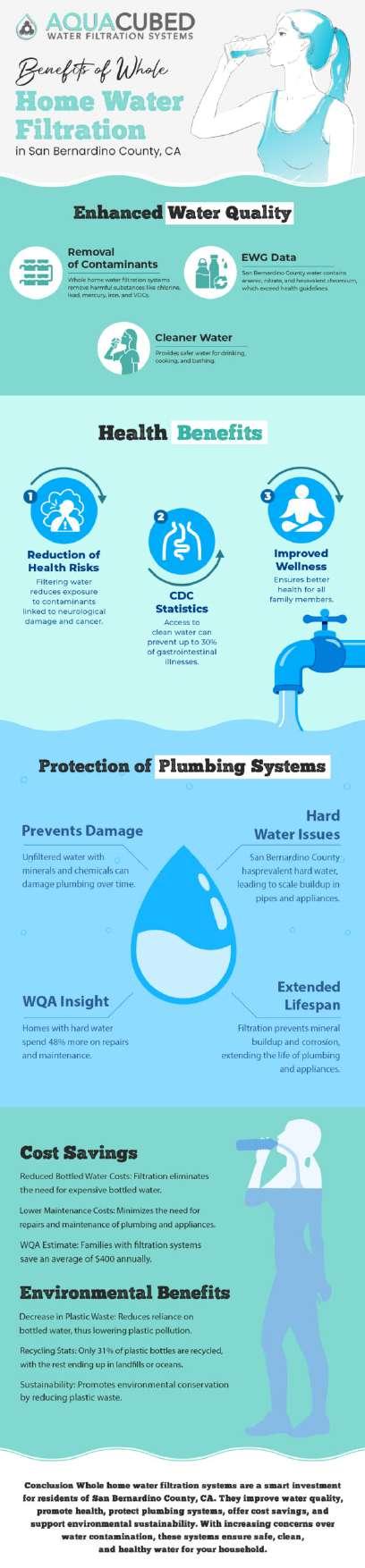 https://aquacubed.net/entire-house-water-filtration-san-bernardino-county-ca/ - This infographic provides a comprehensive overview of the numerous benefits of installing a whole home water filtration system. It visually breaks down the key advantages into easy-to-understand sections, illustrating how filtered water can improve the quality of life in various aspects.