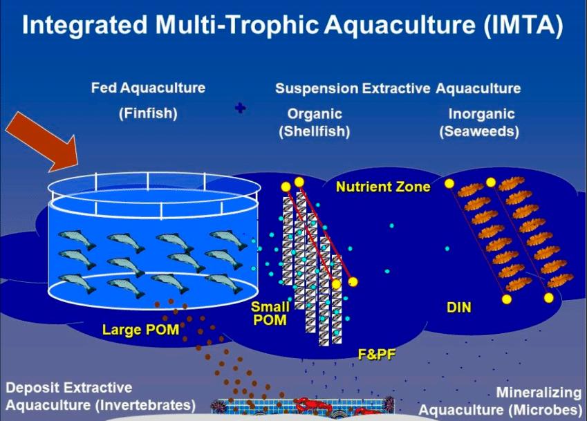 Exploiting recycling benefits through IMTA at sea (Courtesy: T. Chopin from Chopin, 2017).