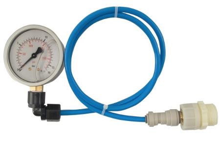 Simple test kit utilising our liquid filled gauge. Fittings included allow for connection to outside taps, hoses or washing machine/appliance valves.